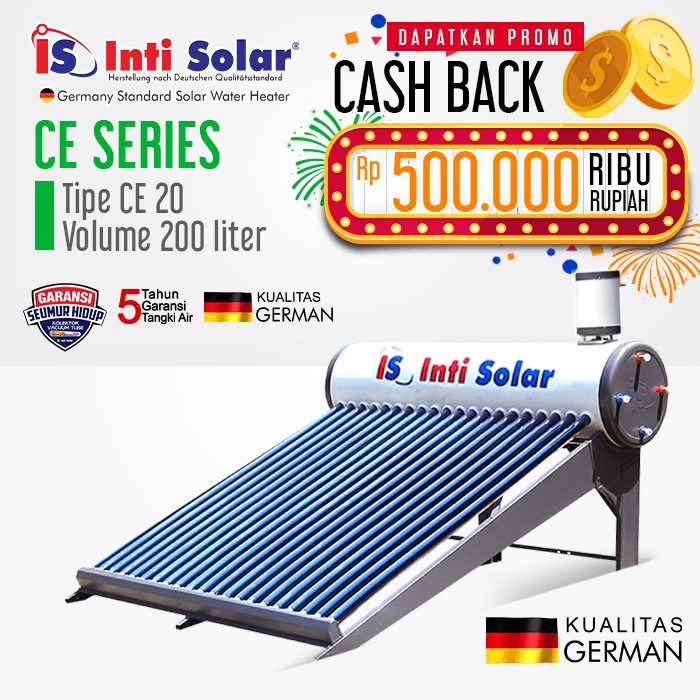 Bumi indonesia yang memiliki iklim tropis dan terletak di garis khatulistiwa amat kaya energi matahari. Pemanas air tenaga matahari/surya atau sering disebut solar water heater biasa diletakkan di genteng ataupun duct rumah, berfungsi memanaskan air dengan energi matahari. Mobil listrik yang memanfaatkan energi dari sinar matahari juga. Pemanas air tenaga matahari dengan pcm storage. Kami menyediakan beberapa kapasitas pemanas air tenaga matahari, dirancang khusus utk iklim indonesia, ramah.